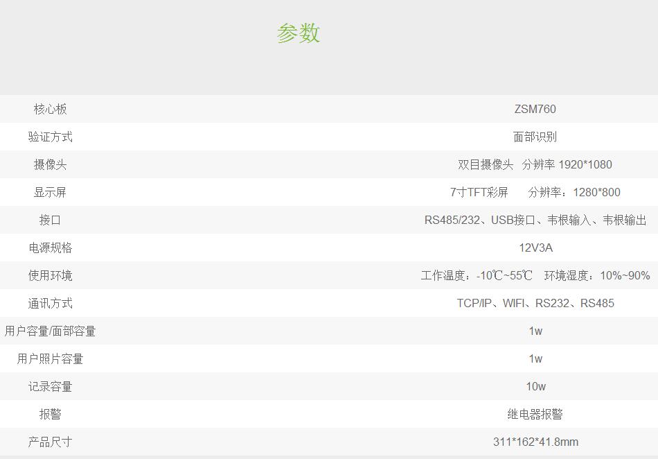 可見光人臉識(shí)別一體機(jī)TDB03 TDB03為一款7寸TFT彩屏設(shè)備,擁有近紅外加可見光人臉識(shí)別功能一體機(jī),其帶有超聲波測(cè)距模塊,可支持1.5m范圍內(nèi)人臉比對(duì)驗(yàn)證,其擴(kuò)展性強(qiáng),使用中控智慧最新人臉識(shí)別算法,能夠快速抓取人臉信息進(jìn)行驗(yàn)證比對(duì),同時(shí)機(jī)器硬件接口及功能豐富(RS232、語(yǔ)音、USB、韋根輸出等),可滿足用戶的不同應(yīng)用場(chǎng)景需求。